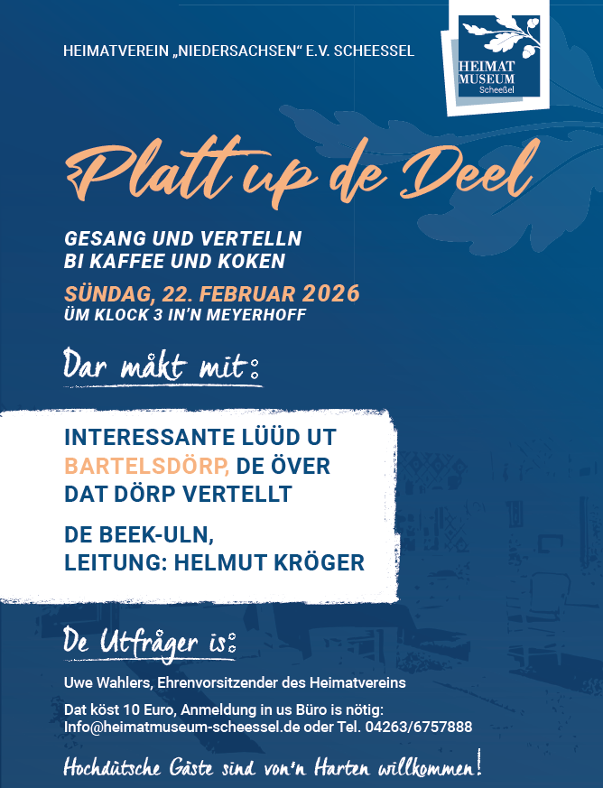 Platt op de Deel geht in die vierte Runde! Am 22. Februar 2026 um 15.00 Uhr befragt Talkmaster Uwe Wahlers ...