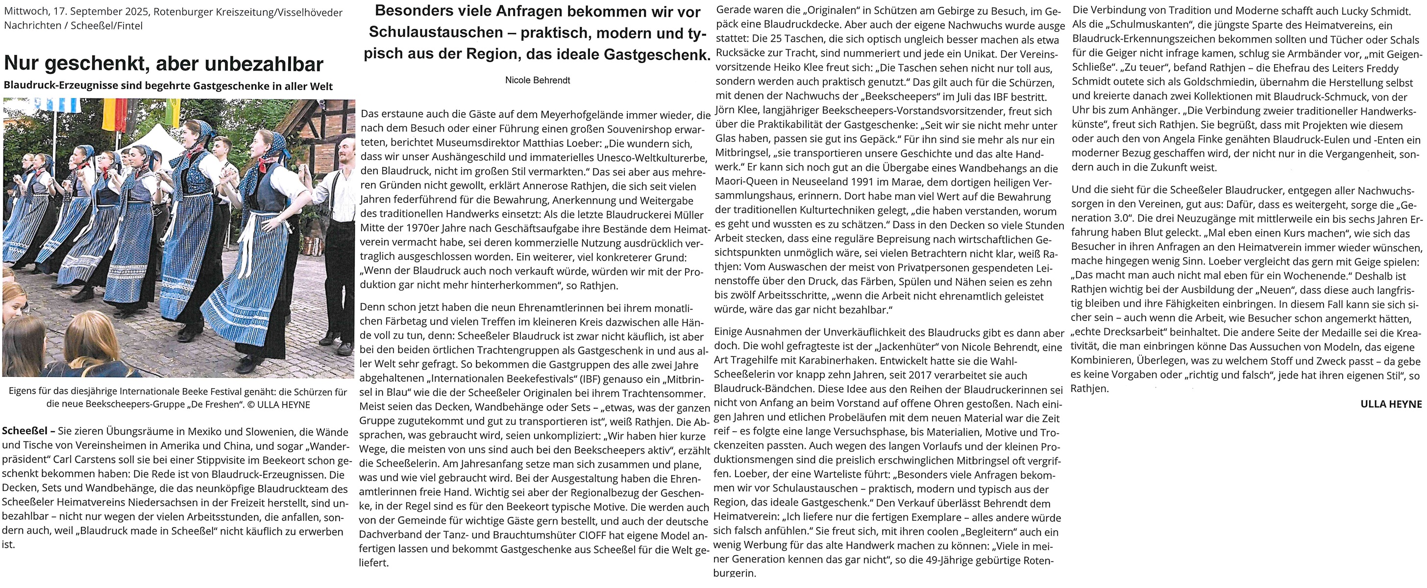 Weithin bekannt - Spende für Scheeßeler Blaudruckabteilung